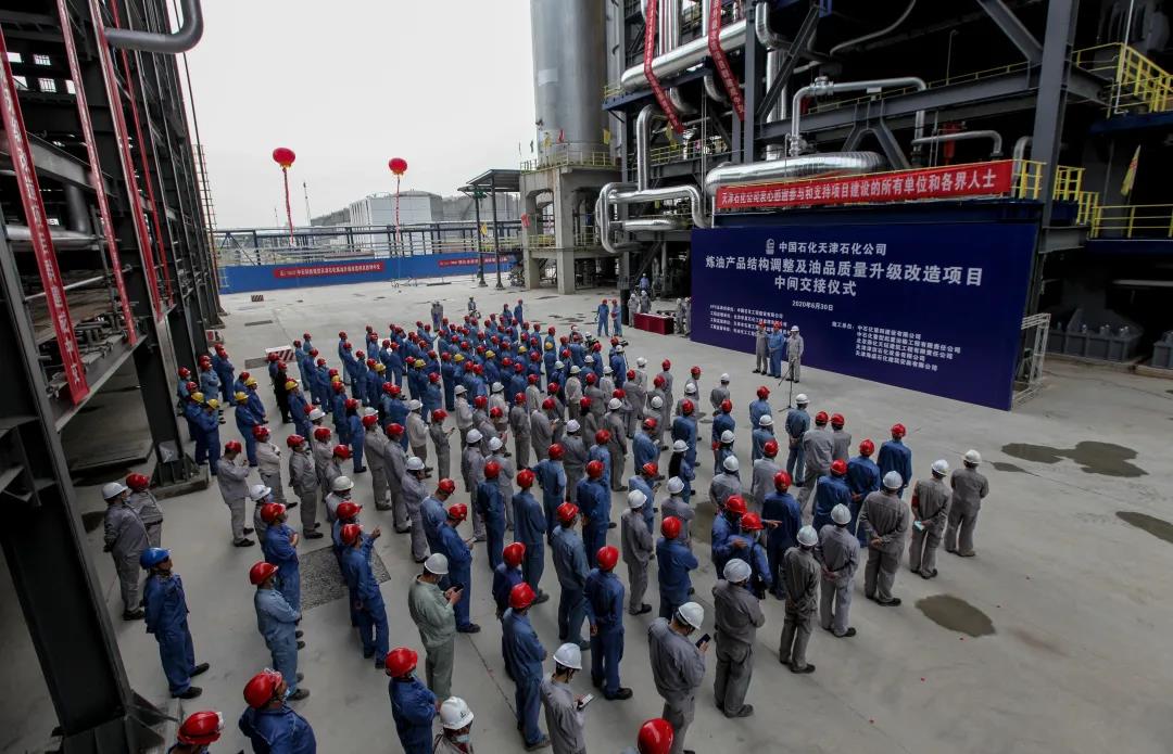 6月30日上午9點16分,天津煉油產品結構調整及油品質量升級改造項目的中間交接儀式天津石化基地280萬噸/年催化裂化裝置區域隆重舉行。